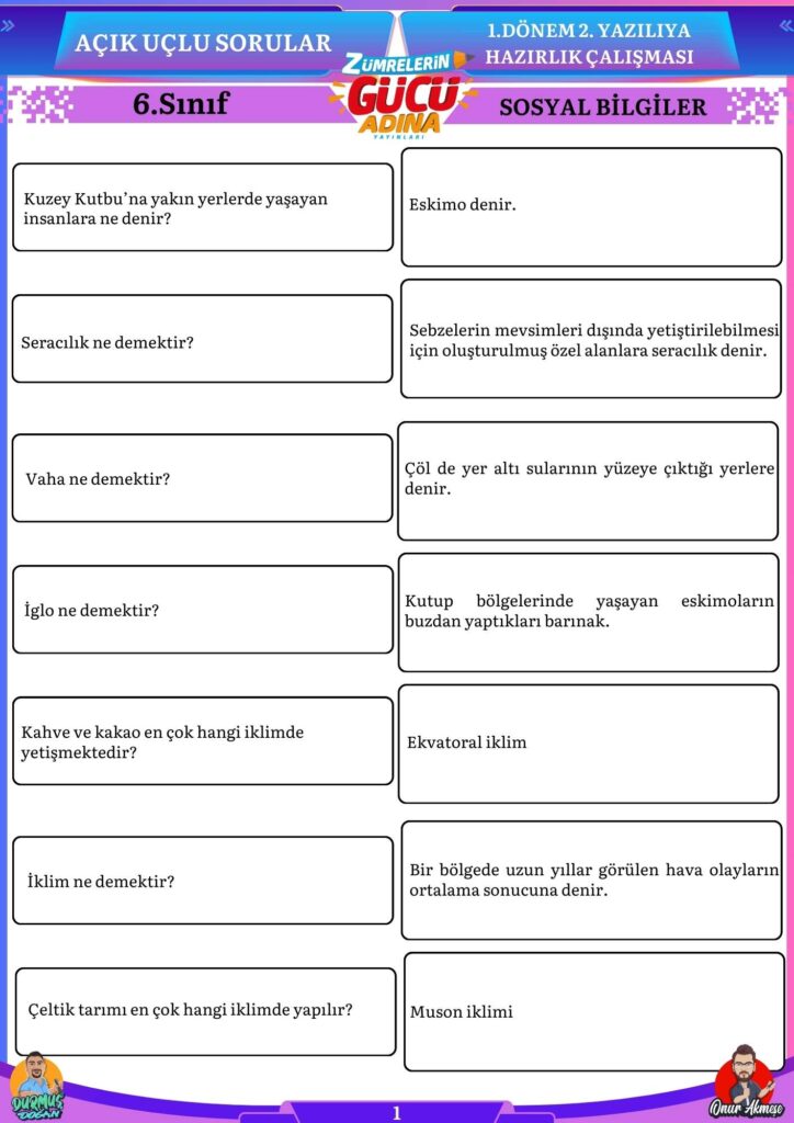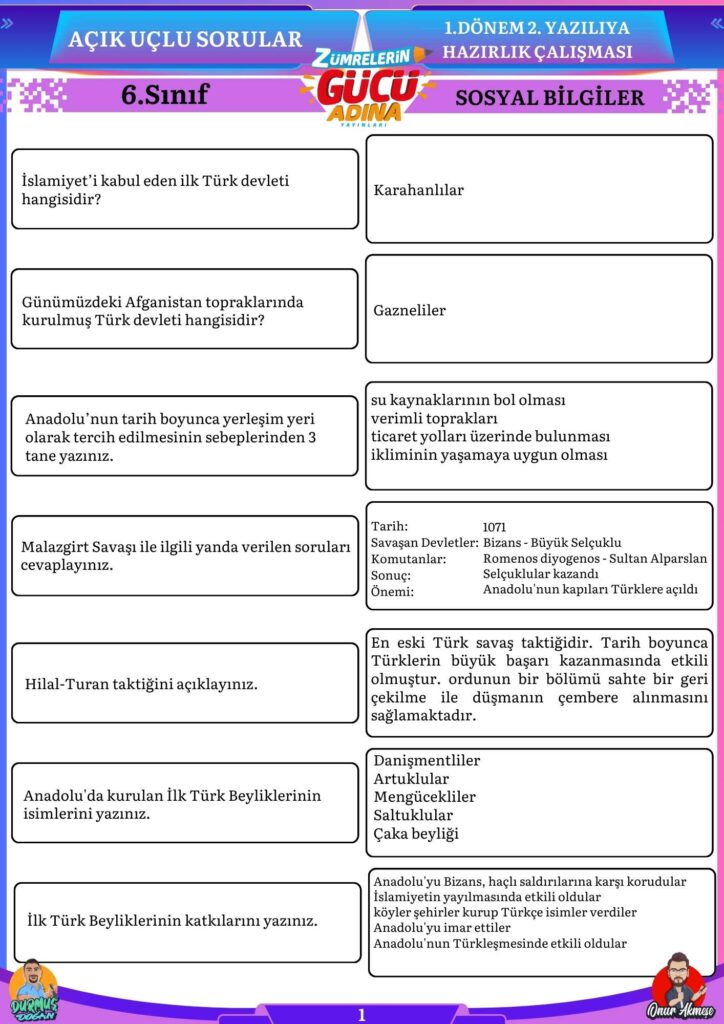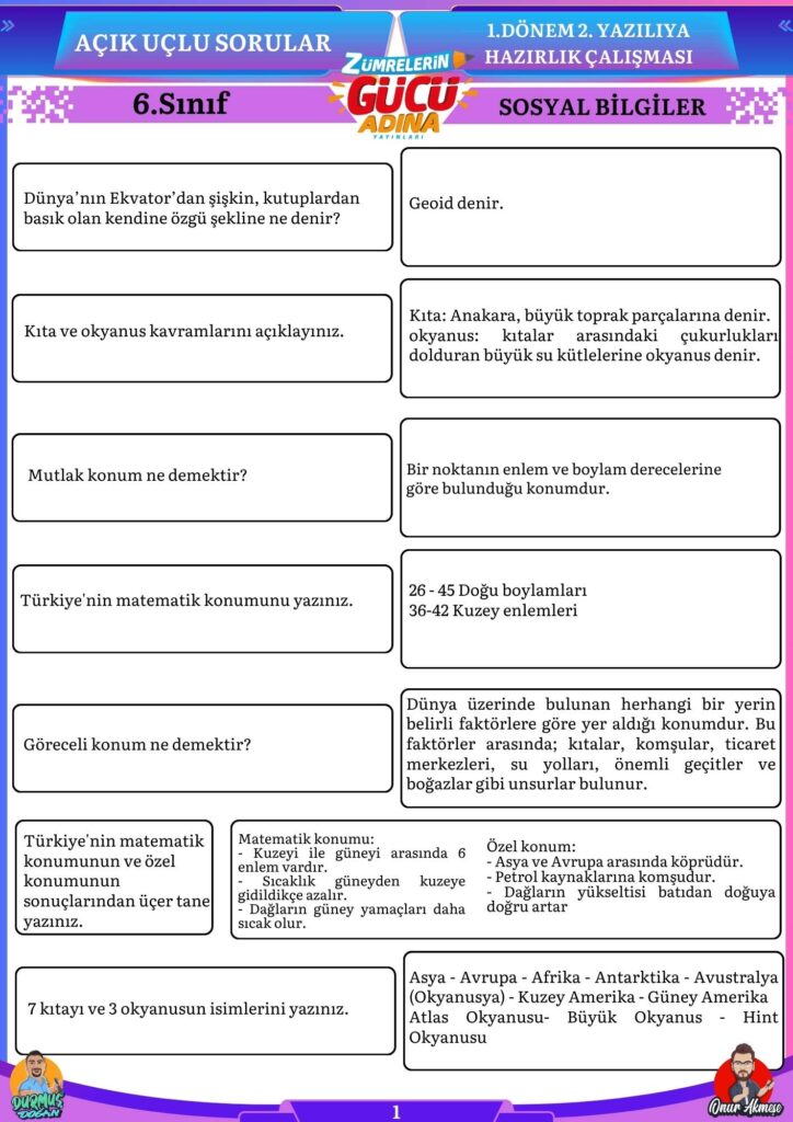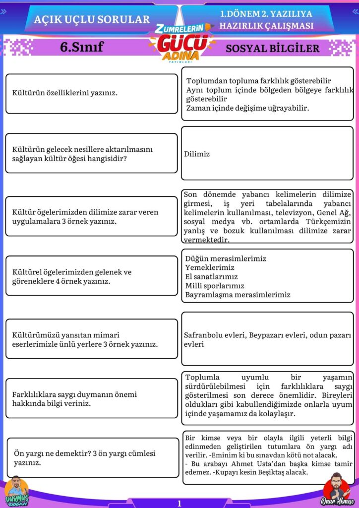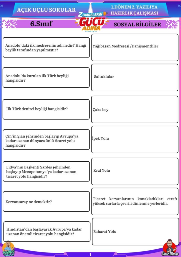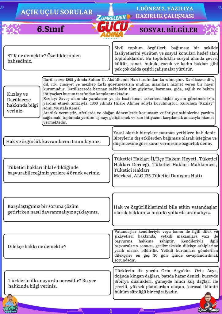 Bu sorular sizin sosyal bilgiler sınavında başarılı olmanıza katkı sağlayacaktır.
