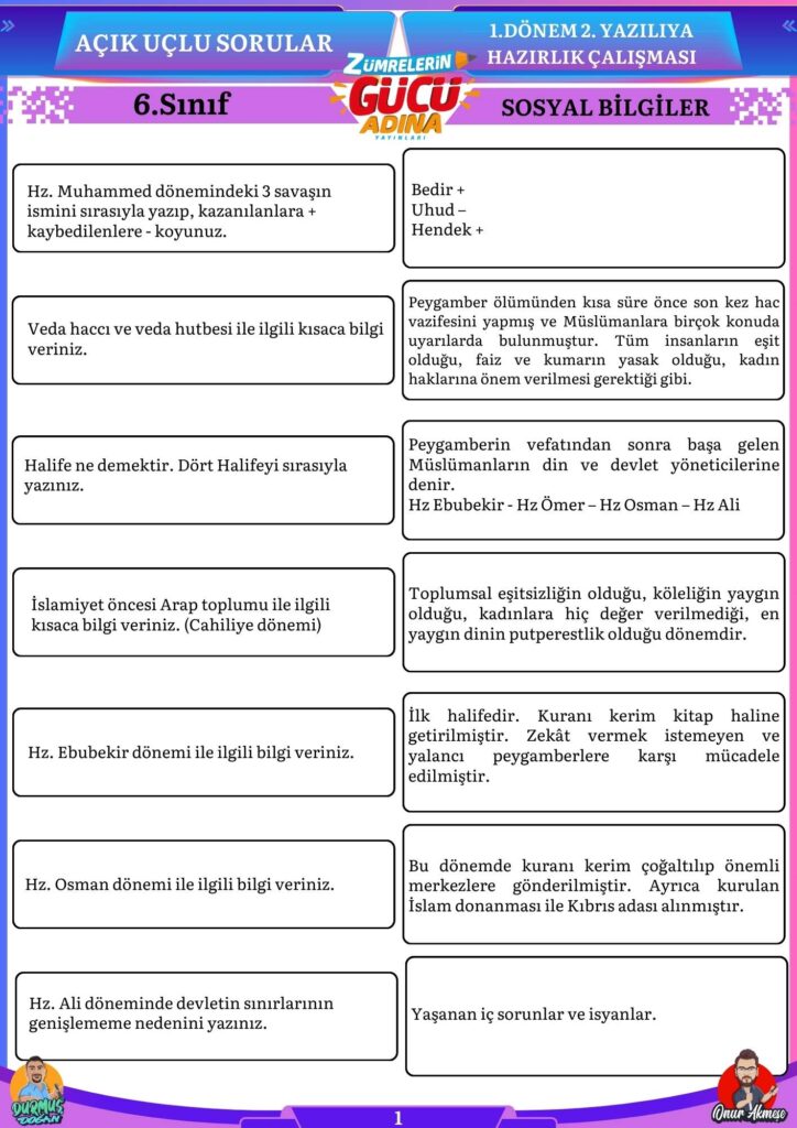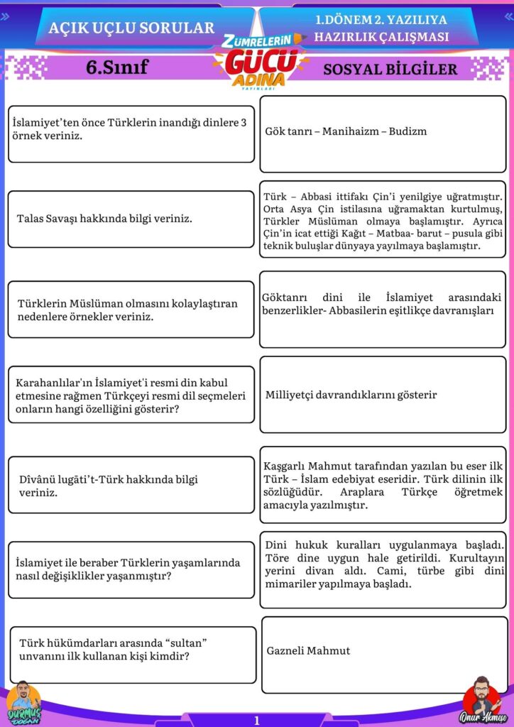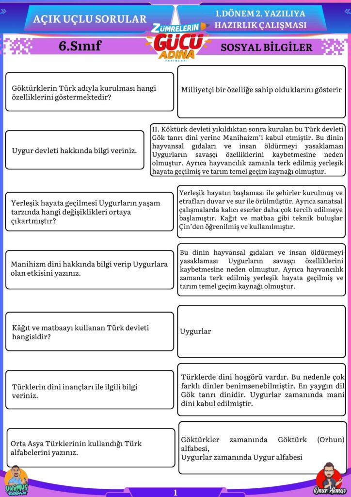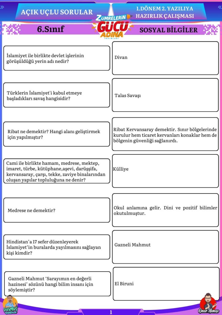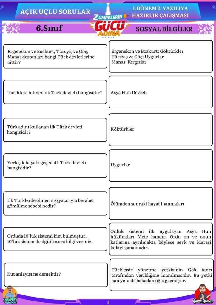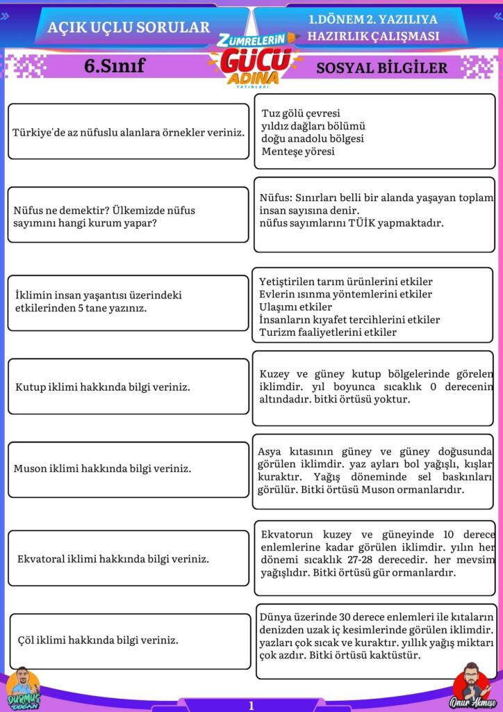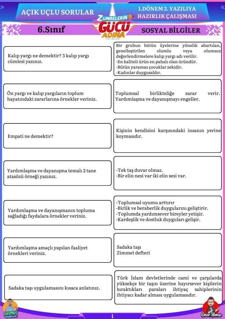 Bu sorular sizin sosyal bilgiler sınavında başarılı olmanıza katkı sağlayacaktır.