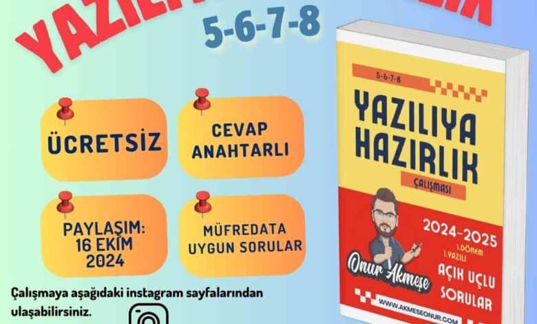 2.Dönem 1. yazılı sınavı için hazırlamış olduğumuz yazılıya hazırlık sorularını aşağıdaki bağlantıdan indirebilirsiniz.CEVAP ANAHTARI 20.03.2024 TARİHİNDE burada olacaktır.5. SINIF Çalışma…