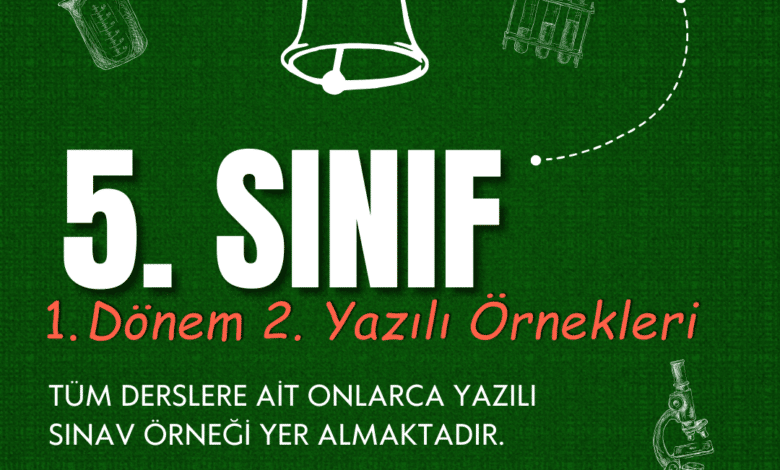 5. SINIF 1. dönem 2. yazılı sınavlarını derslerin üzerine tıklayarak indirebilirsiniz. Her dersten 3-4 farklı örnek sınav yer almaktadır. Tüm…